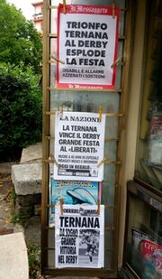 Una delle cose più belle, all'indomani della vittoria nel derby contro il Perugia, sono le locandine dei quotidiani che campeggiano fuori dalle edicole. Ovviamente si tratta delle edicole della provincia di Terni. Quali siano i titoli di quelle uscite nella zona di Perugia non lo sappiamo. A noi basta leggere questi bei titoli per stare contenti. Ora, per mettere la ciliegina finale su questa magnifica torta ci vorrebbe un'altra grande impresa da compiere venerdi 6 maggio ad Ascoli. Tutti ben sappiamo della rivalità che c'è fra i sostenitori delle Fere e quelli marchigiani. Ternana-Ascoli, in poche parole, è uno di quegli incontri di cartello che vengono considerati alla stregua di un mezzo derby, quindi non sarà facile andare nelle Marche e portare via dei punti. Tuttavia c'è da considerare che l'Ascoli è già dentro ai play-off e quindi affronterà questa gara con relativa tranquillità. Staremo a vedere.